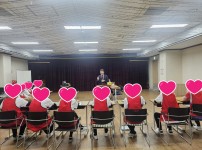 대표님께서 종사자들에게 어르신 케어에 대해 교육을 시켜주시고 계십니다.