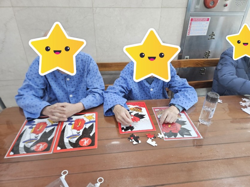 프로그램 ) 퍼즐맞추기~ 그림을 보고 똑같이 퍼즐 맞추기를 하고 계십니다. 어르신 최고~!